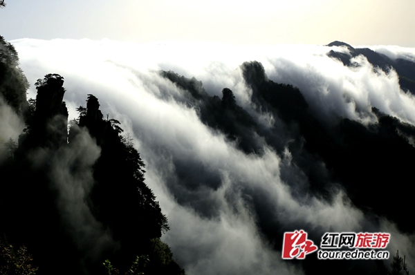 張家界武陵源云瀑“活了”:雨后翻騰如天河傾瀉2016/04/18張家界武陵源云瀑“活了”:雨后翻騰如天河傾瀉