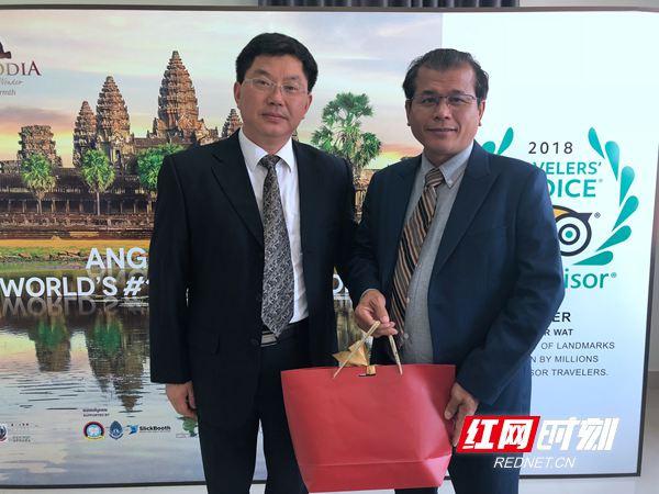 24日,促銷團一行還拜訪了柬埔寨暹粒省旅游局,受到柬埔寨暹粒省旅游局局長森克的熱情接見,并舉行座談會。張家界市與柬埔寨暹粒省2017年簽訂了友好城市合作備忘錄,雙方在旅游、經(jīng)貿(mào)、教育等方面有著諸多合作和共識。