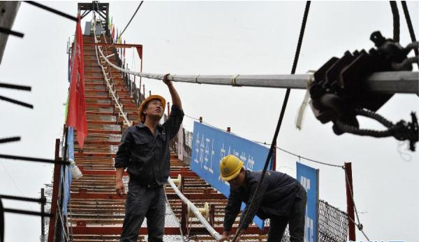 張家界大峽谷玻璃橋進(jìn)入主纜施工階段
