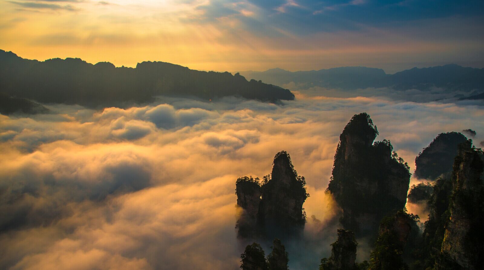 天子峰雄踞茶盤西南側(cè),海拔1262. 5米,是天子山制高點。