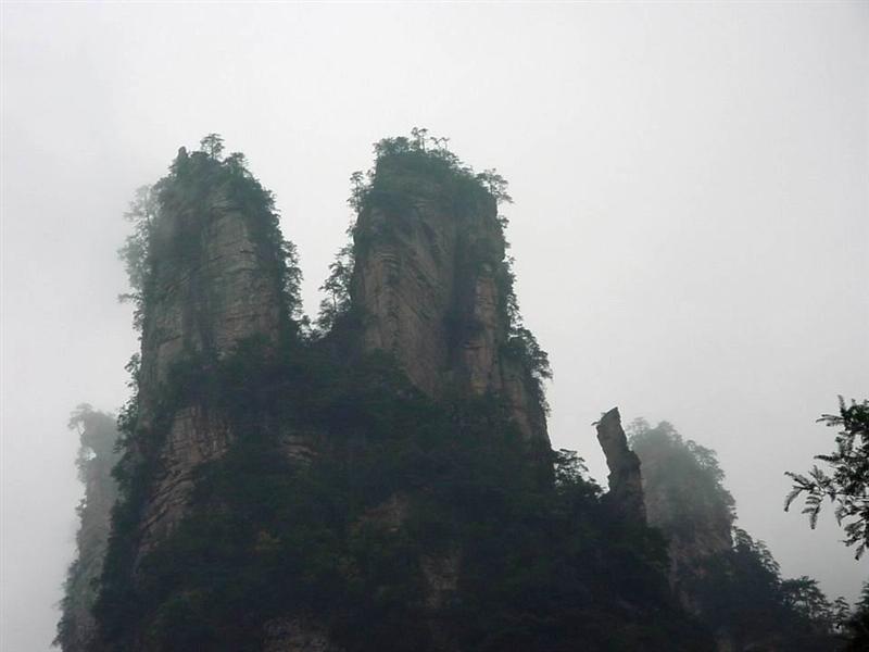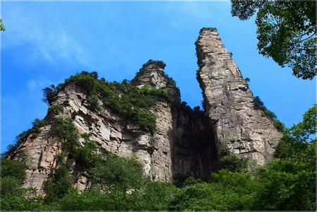 位于張家界國家森林公園內,這是一個象形石峰,似男女人形作依偎狀,故此得名。位于紫草潭東約600米處,峰叢中兩座較高石峰下端渾然一體。