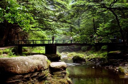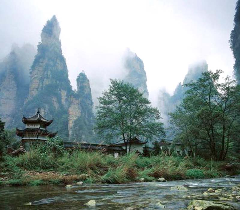 “水隨山轉,山因水活”、“溪水因山成曲折,山溪隨地作低平”。金鞭溪的水流到這里,此處地勢平坦,積沙成州,傳說是“向王天子”的出生地,故古代又名“天子州”。站在天子州向前眺望,遠處石峰上那“簽筒筆架萬歲牌”的七個大字,還依稀可辨,傳說它是當年向王天子坐朝受拜的地方。在這里,還可以看到古人模樣的“四十八大將軍”中的好幾個。從這里向東北可去索溪峪;向西南可去張家界;向西可上天子山,是一處行旅方便之地。如今,這里以修建了旅游新村,專供游人住宿休息,為了撫平一天的勞頓,更好的養(yǎng)精蓄銳,探索未知的風光名勝。