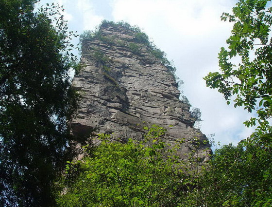 是張家界數(shù)以千計的奇峰怪石中又一典型,它從山間拔地而起,三面筆陡,有棱有角,金光閃爍,氣勢雄偉,因形同古代兵器中的鞭而得名。相傳,秦始皇趕山填海到此,因醉酒 不慎將金鞭墜落,化作石峰。