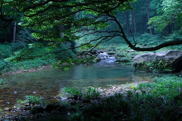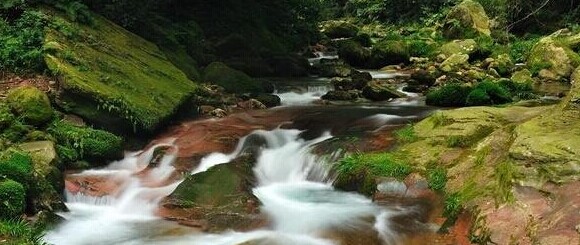 位于紫草潭下游。若把金鞭溪比作絕代麗人,兩潭則是其一雙動(dòng)人的眼睛。跳魚潭也是由溪水沖刷成的石槽,水流傾瀉入潭,形成落差,游魚在產(chǎn)子期溯水而上,至此活蹦亂跳,故名跳魚潭。
